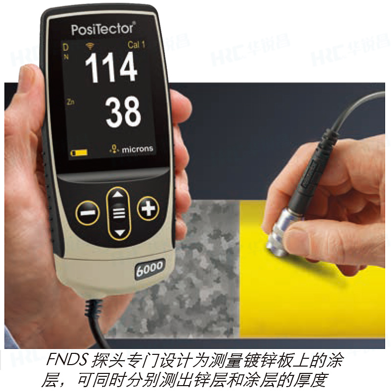- FNDS 探头专门设计为测量镀锌板上的涂层,可同时分别测出锌层和涂层的厚度