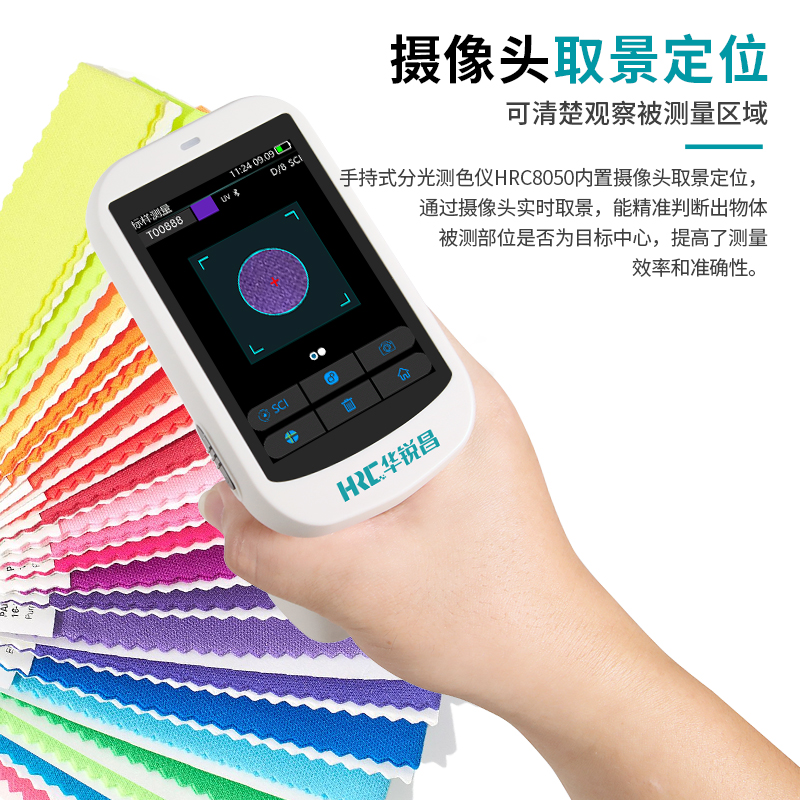 HRC8050 十三口径手持式分光测色仪 是华锐昌科技针对高端工业颜色检测需求推出的专业型号, 集高精度测量、灵活口径配置与智能数据管理于一体, 适用于塑胶电子、涂料油漆、纺织服装、印刷陶瓷等行业, 帮助企业在生产与检测环节实现稳定、可追溯的色彩品质控制。